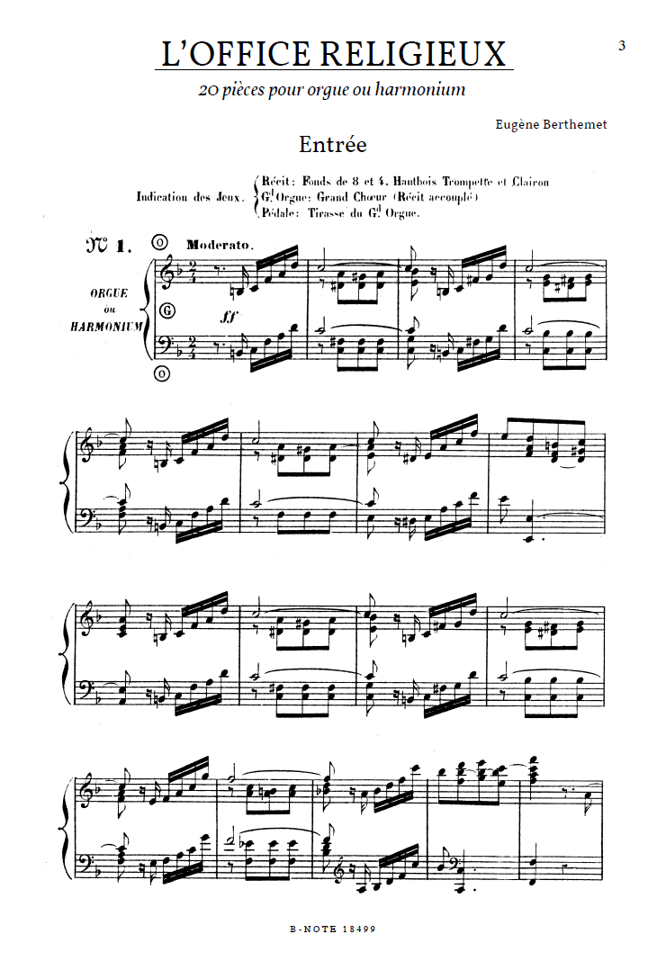 Berthemet: L’Office religieux - 20 pieces pour orgue ou harmonium